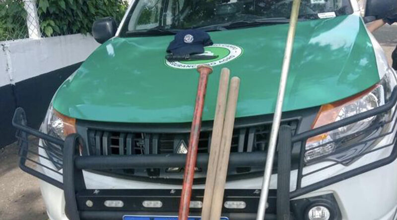 De acordo com a GCM, em determinado momento apareceu um rapaz sem camisa, com uma faca, dizendo que se não pudesse mexer no local ele iria matar os GCMs e os moradores que denunciaram a invasão. Os agentes tentaram dialogar com o rapaz, mas o cidadão se encontrava muito alterado e foi pra cima da equipe, onde conseguiram deter o indivíduo e retirar a sua faca.